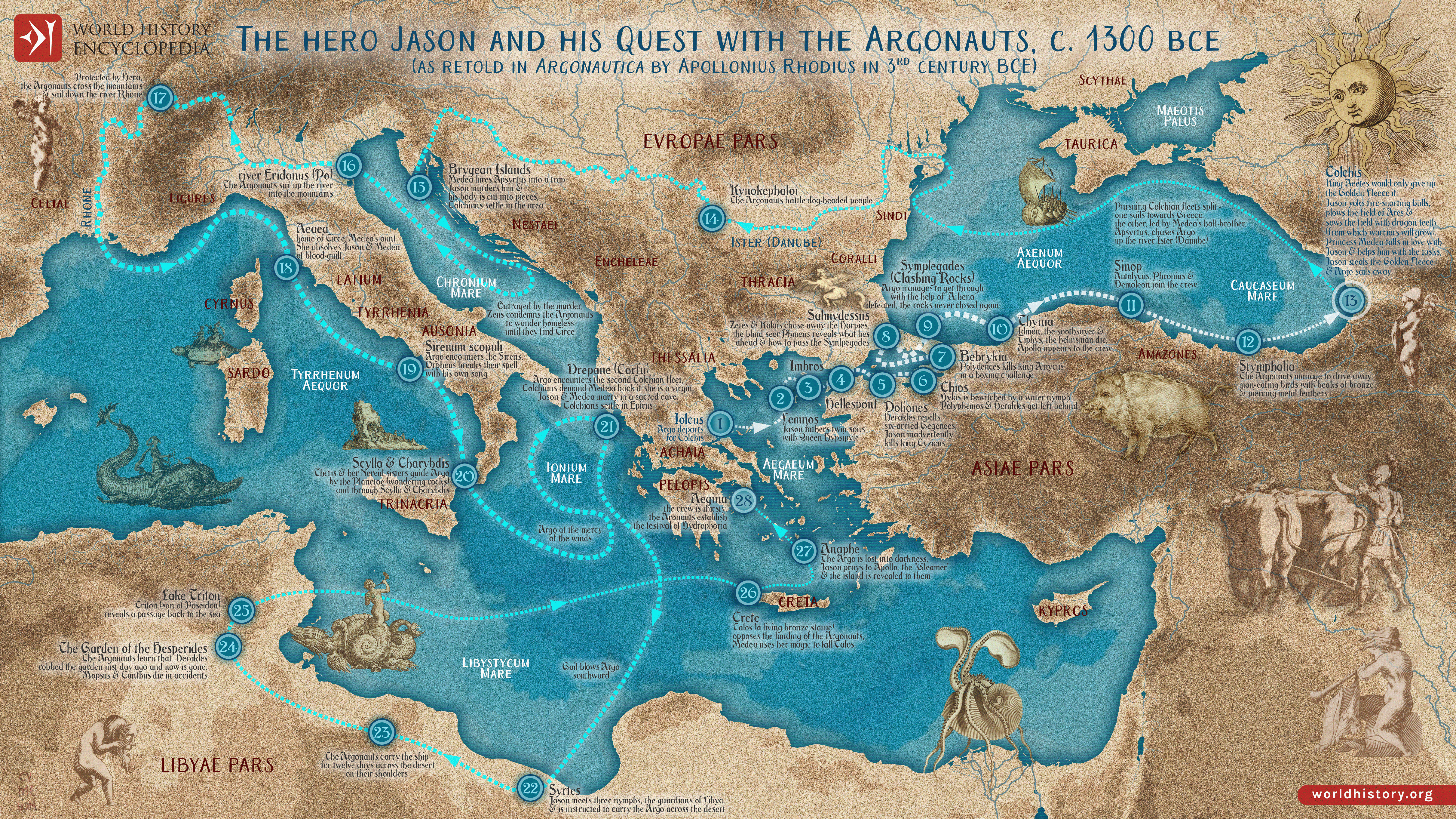 Netchev, Simeon. "Map of the Quest of Jason and the Argonauts." World History Encyclopedia, 02 Aug 2022, https://www.worldhistory.org/image/16219/map-of-the-quest-of-jason-and-the-argonauts/.