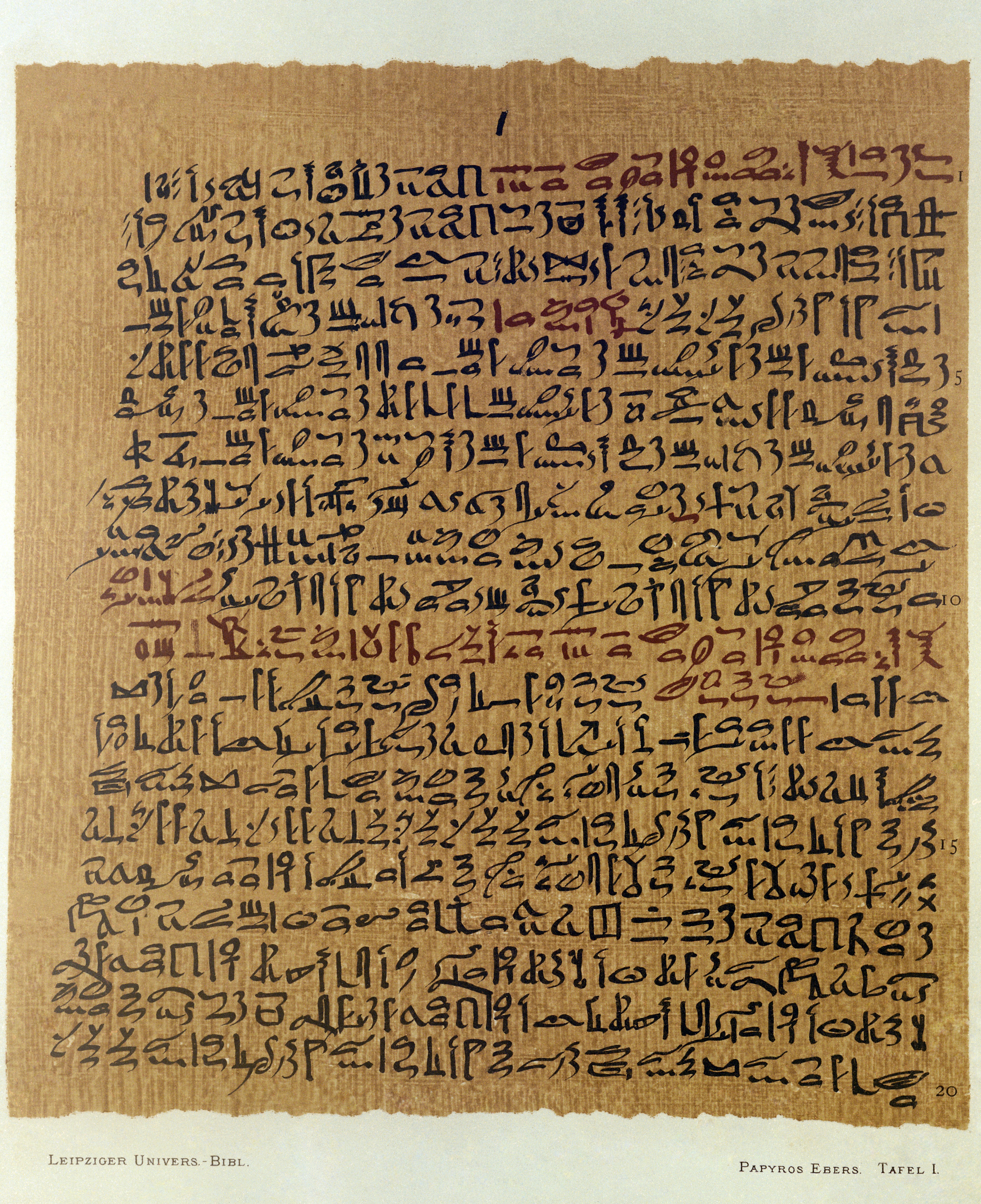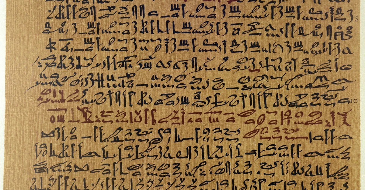A reproduction of the Ebers Papyrus (c. 1550 BCE), an Egyptian medical text.