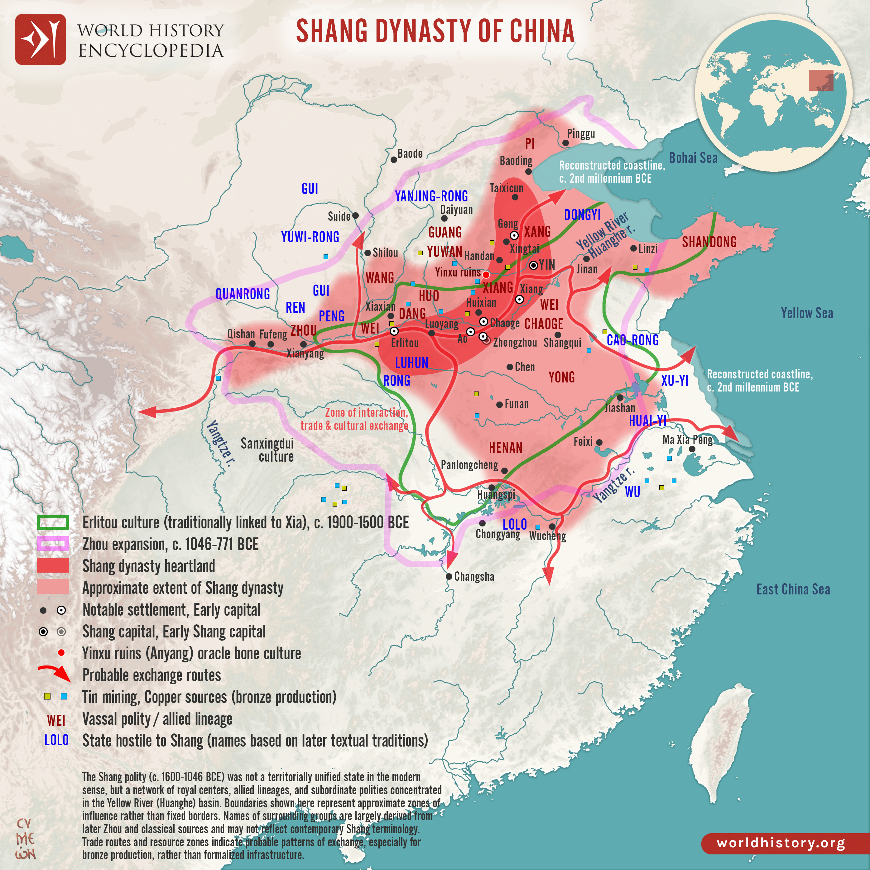 Netchev, S. (2026, March 30). Map of the Shang Dynasty of China, c. 1100 BCE: Bronze, Kingship, and Networks in the Yellow River World. World History Encyclopedia. https://www.worldhistory.org/image/16231/map-of-the-shang-dynasty-of-china-c-1100-bce/