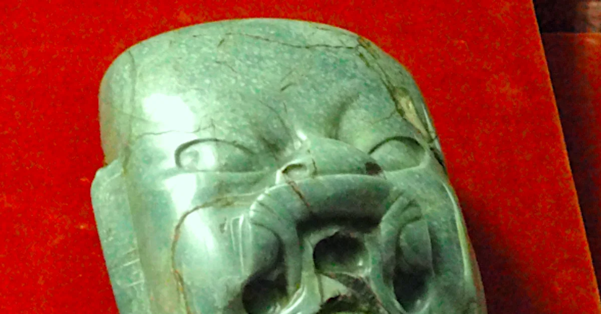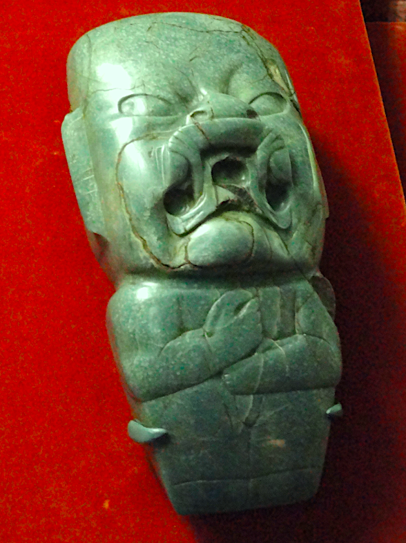 The Kunz Axe, a ceremonial axe-head or celt created by the Olmec civilization of Mesoamerica. Carved from jade. (Museum of Natural History, New York)