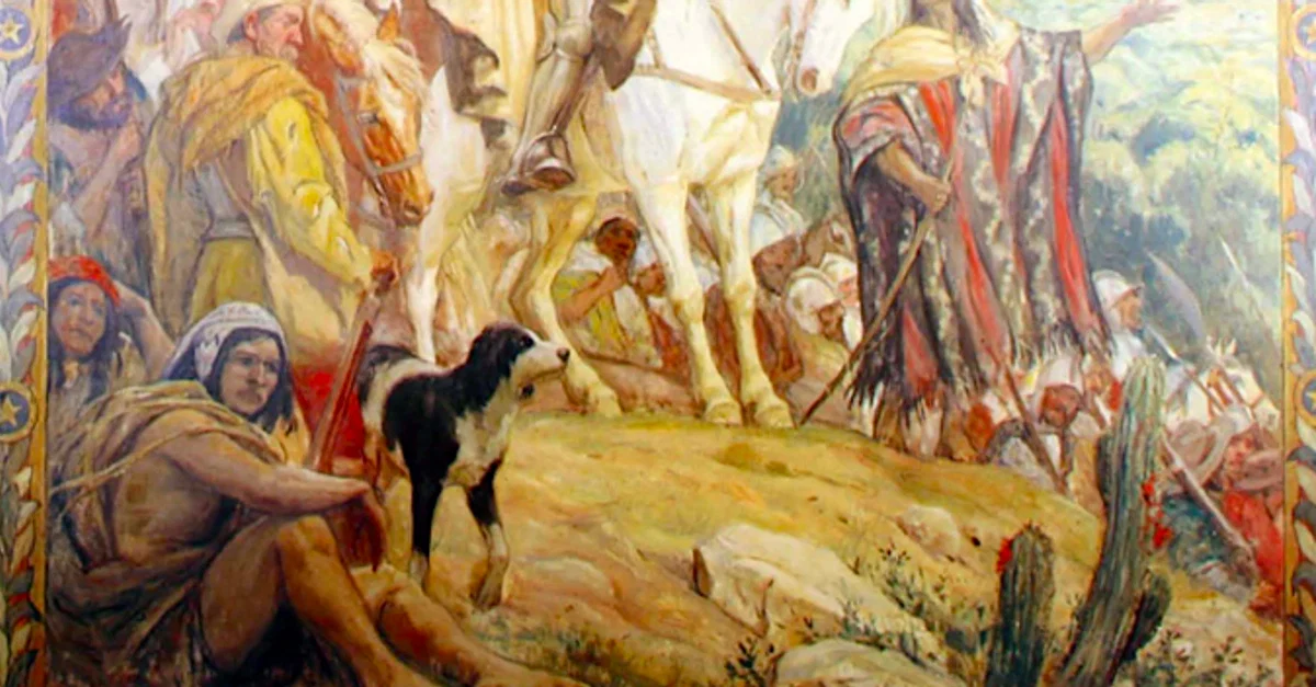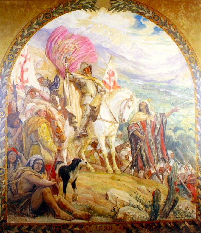 A 20th-century mural by Pedro Subercaseaux showing Diego de Almagro (c. 1475-1538), the Spanish conquistador on his expedition of conquest in Chile from 1535 to 1537.