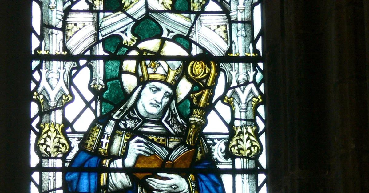 St Anselm of Canterbury (c. 1033-1109), as depicted in a stained glass window in Chester Cathedral, England, 1916.