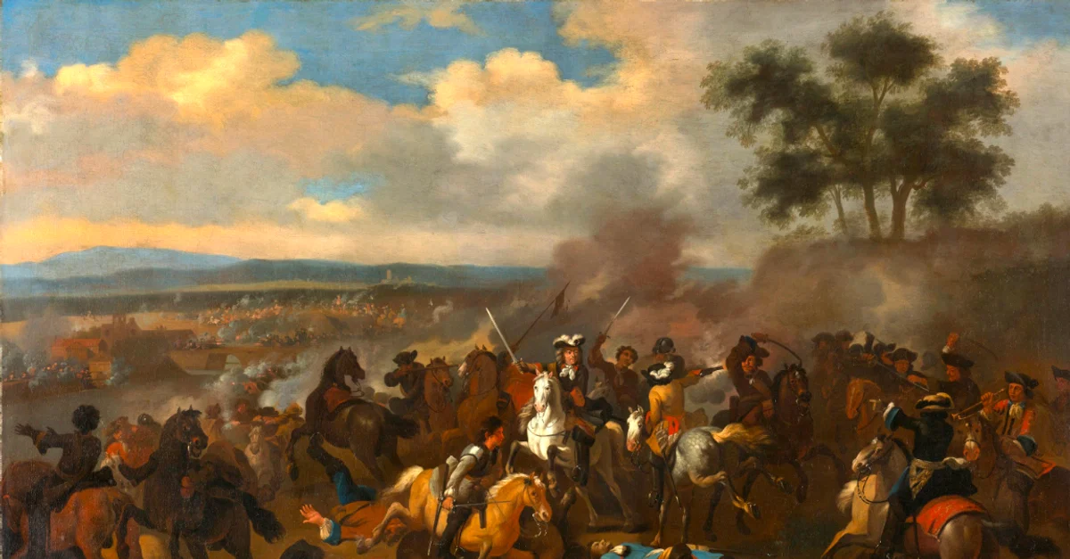 A painting by Jan van Huchtenburg of the Battle of the Boyne in July 1690 in Ireland where William III of England (aka William of Orange) defeated an army led by the deposed James II of England. (Rijksmuseum, Amsterdam)