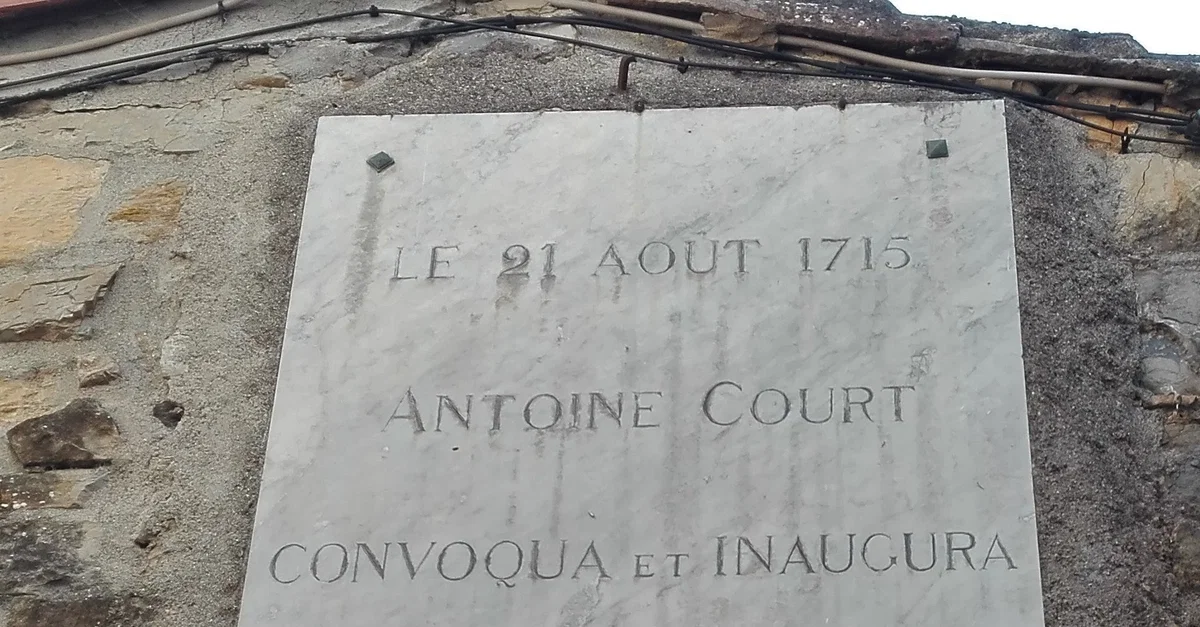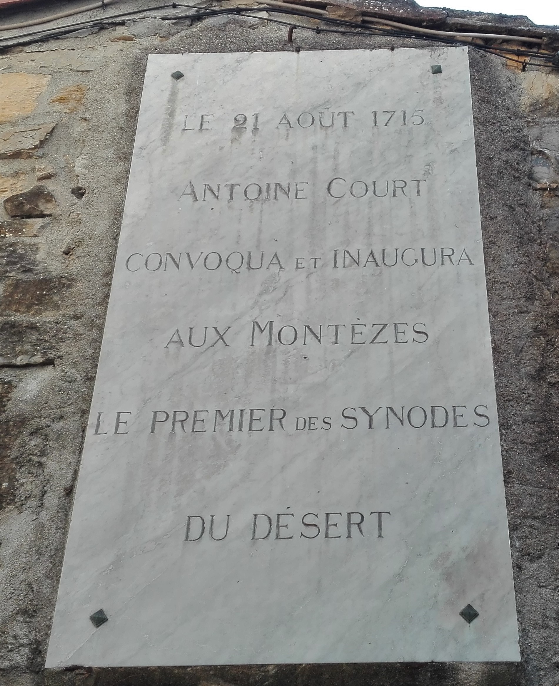 Commemorative plaque of the first synod in the Désert at Montèzes near Monoblet, organized by Antoine Court in 1715.