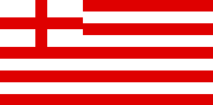 The original flag of the English East India Company (EIC), founded in 1600 by royal charter. The company later changed its name to the British East India Company and so the cross of St. George in the top right corner was replaced by a Union flag and then the Union Jack.