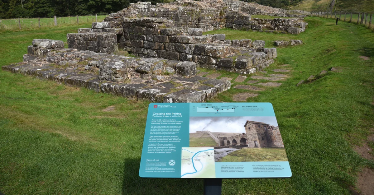 During Roman times, three bridges were built successively over the River Irthing to maintain continuity along Hadrian's Wall. The remains visible today in the Willowford sector of Hadrian's Wall represent various stages of abutments on the bridge's eastern side.