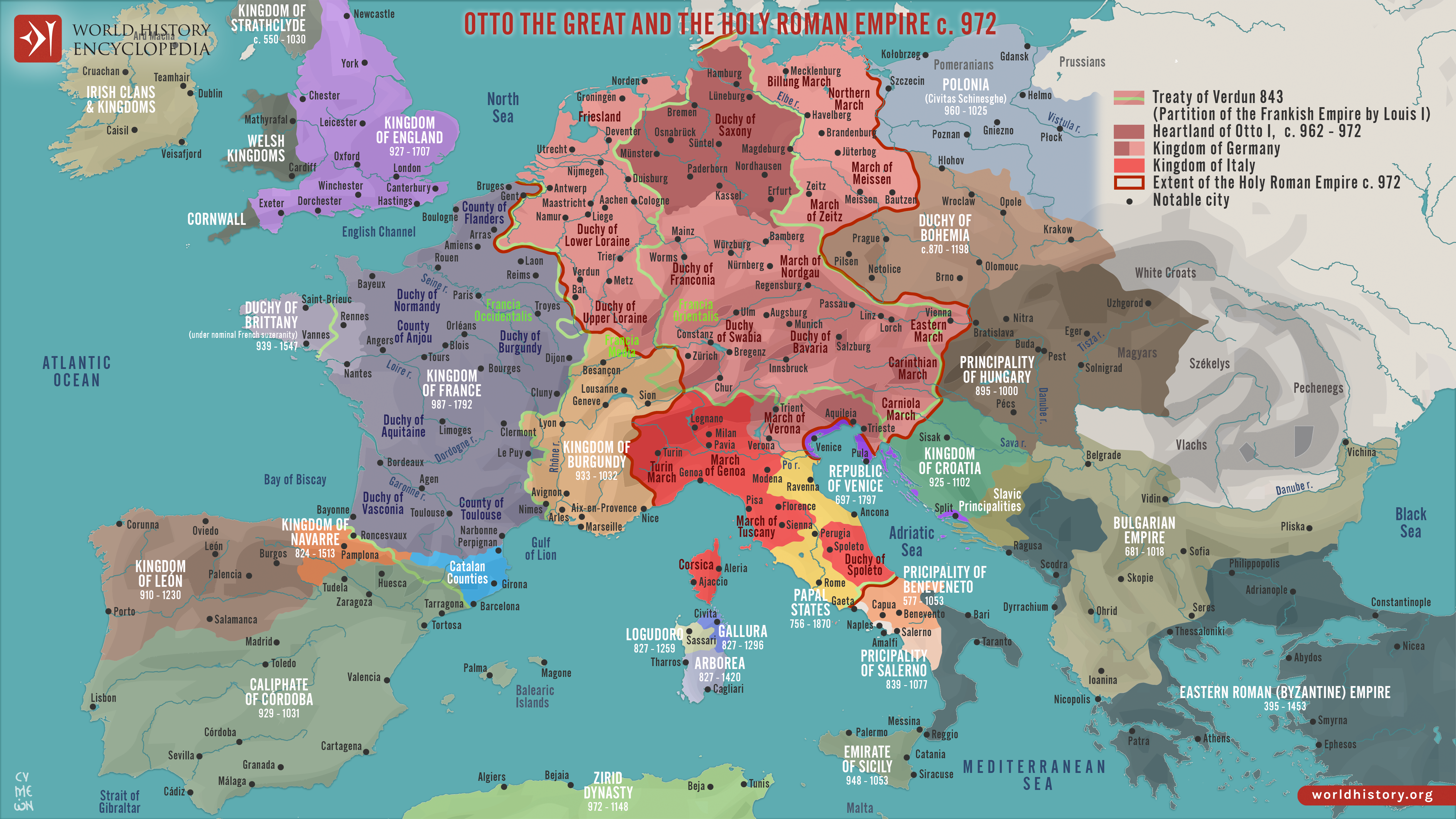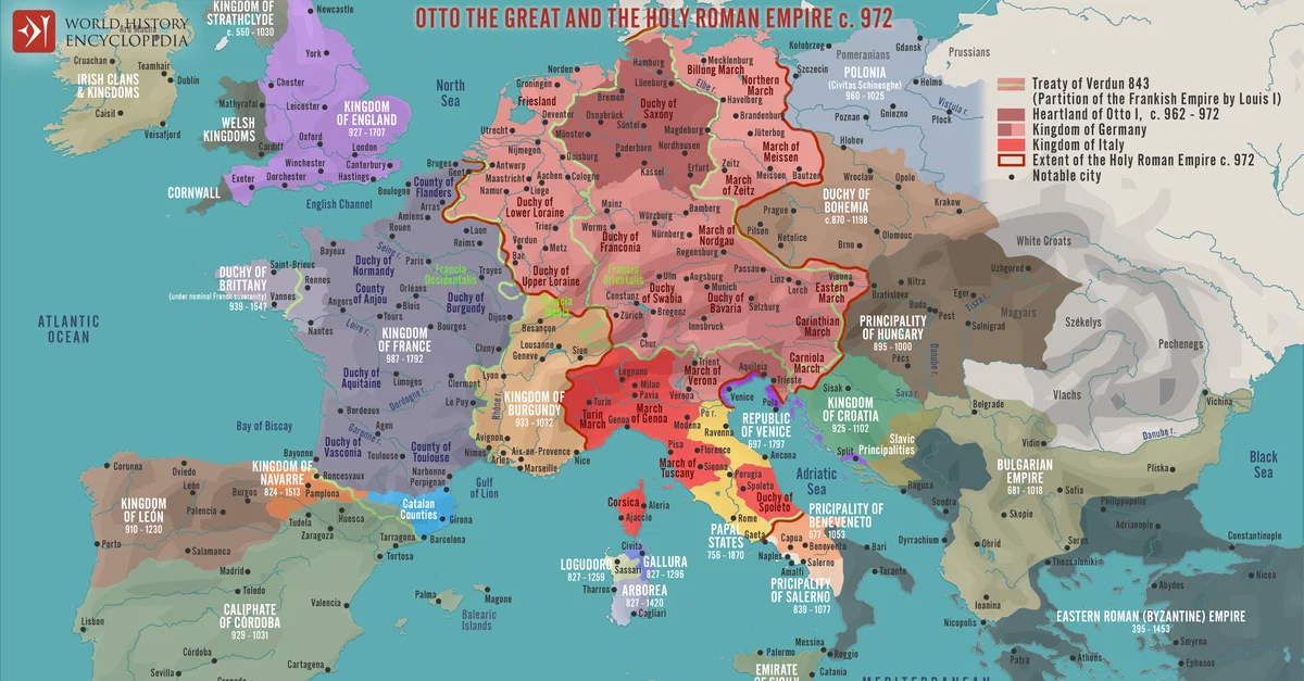 Netchev, S. (2022, September 26). Map of the Holy Roman Empire under Otto the Great c. 972. World History Encyclopedia. https://www.worldhistory.org/image/16428/map-of-the-holy-roman-empire-under-otto-the-great/