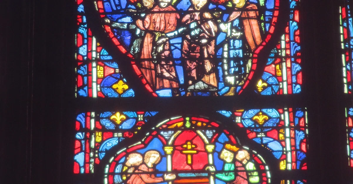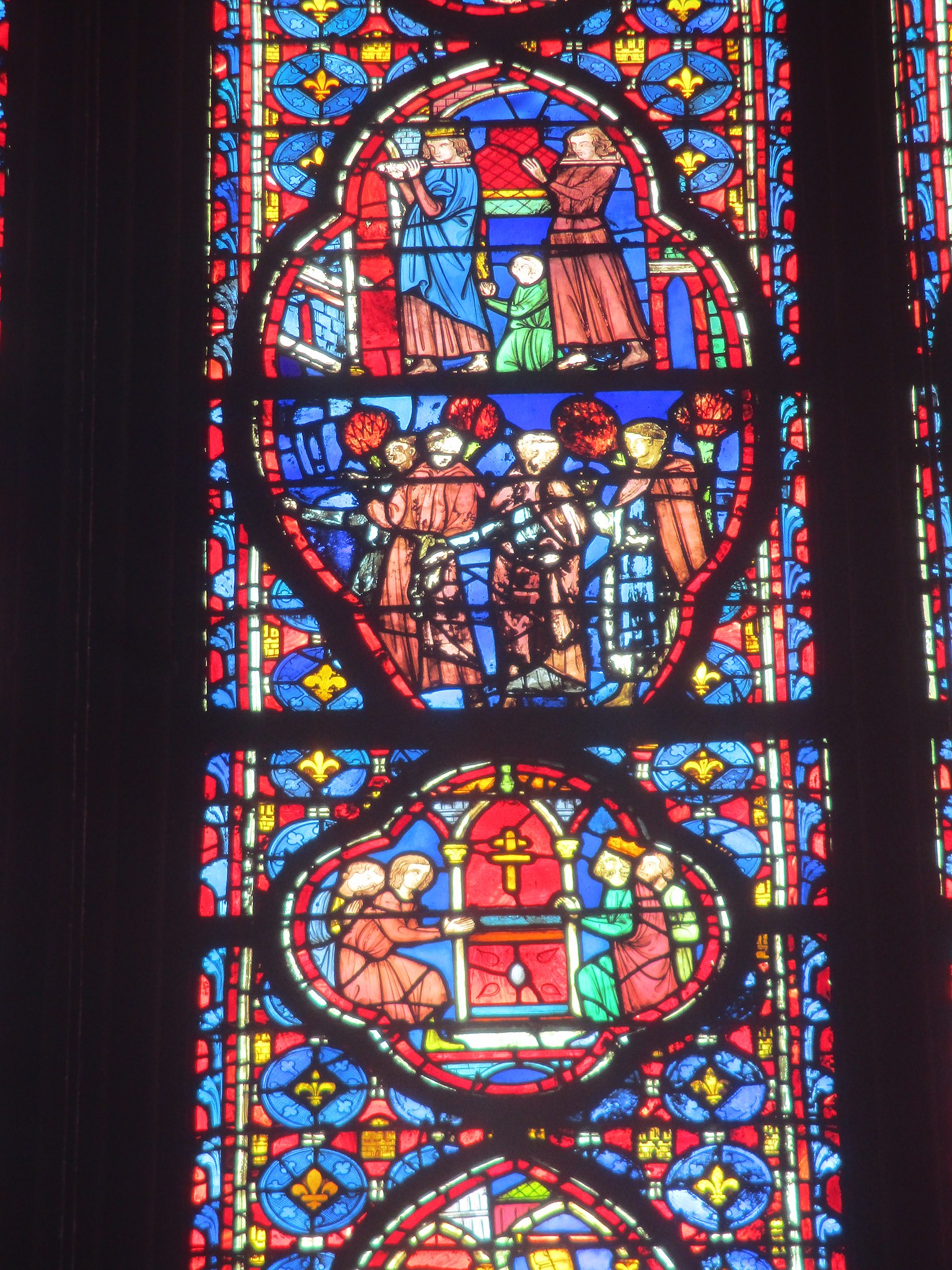 Relics Window, depicting Louis IX of France with the relics of the Passion, Sainte-Chapelle, Paris.