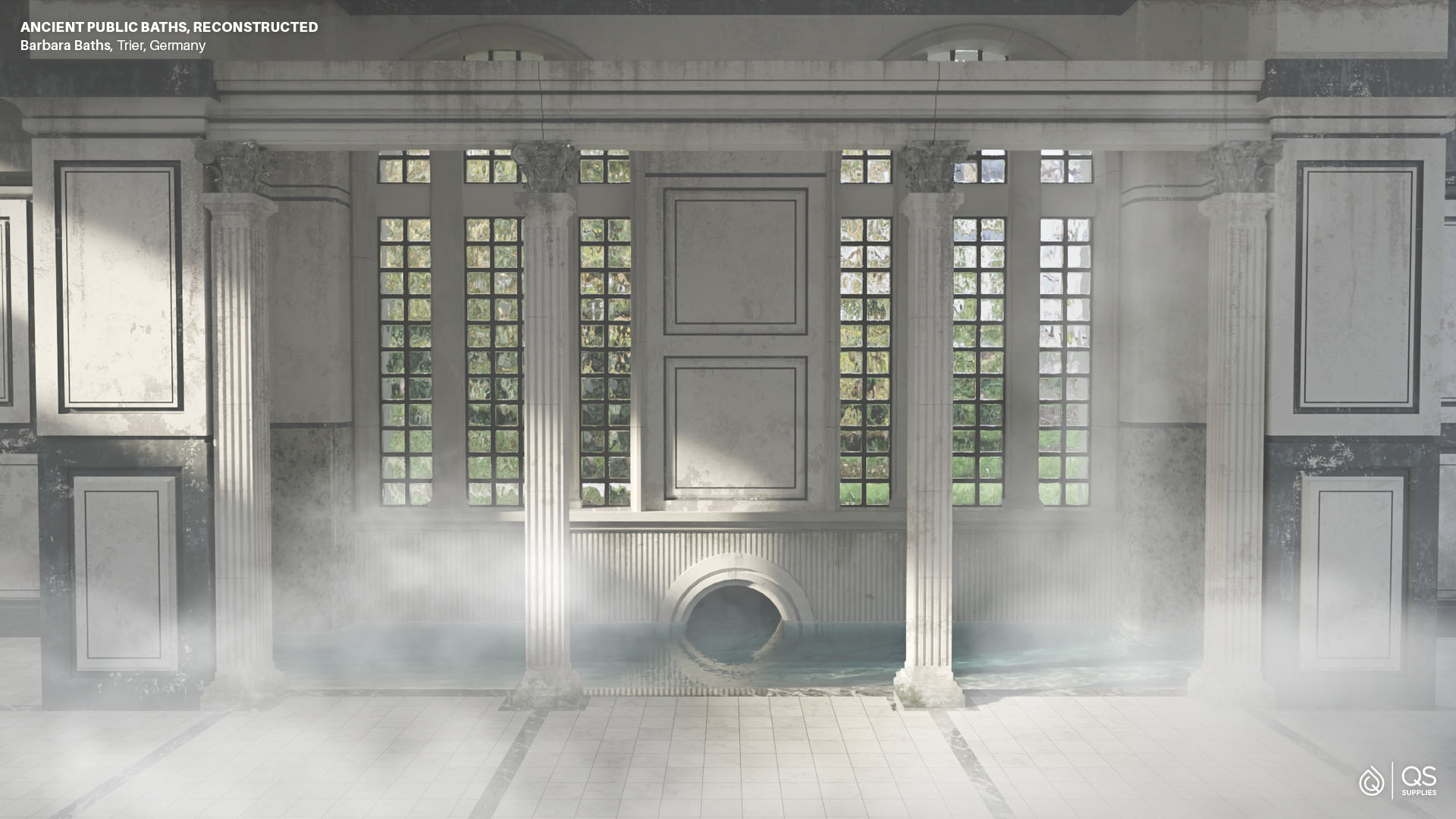 A digital reconstruction of what the Barbara Baths in Trier, Germany may have looked like. Reconstruction created by NeoMam Studios, commissioned by QS Supplies.