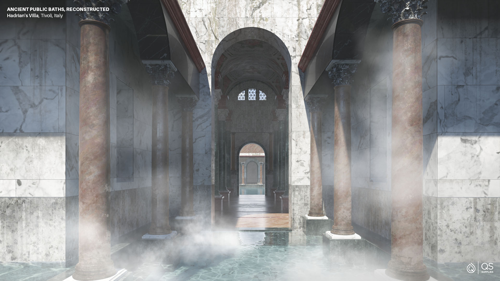 A digital reconstruction of what the at Hadrian's Villa in Tivoli, Italy may have looked like. Reconstruction created by NeoMam Studios, commissioned by QS Supplies.