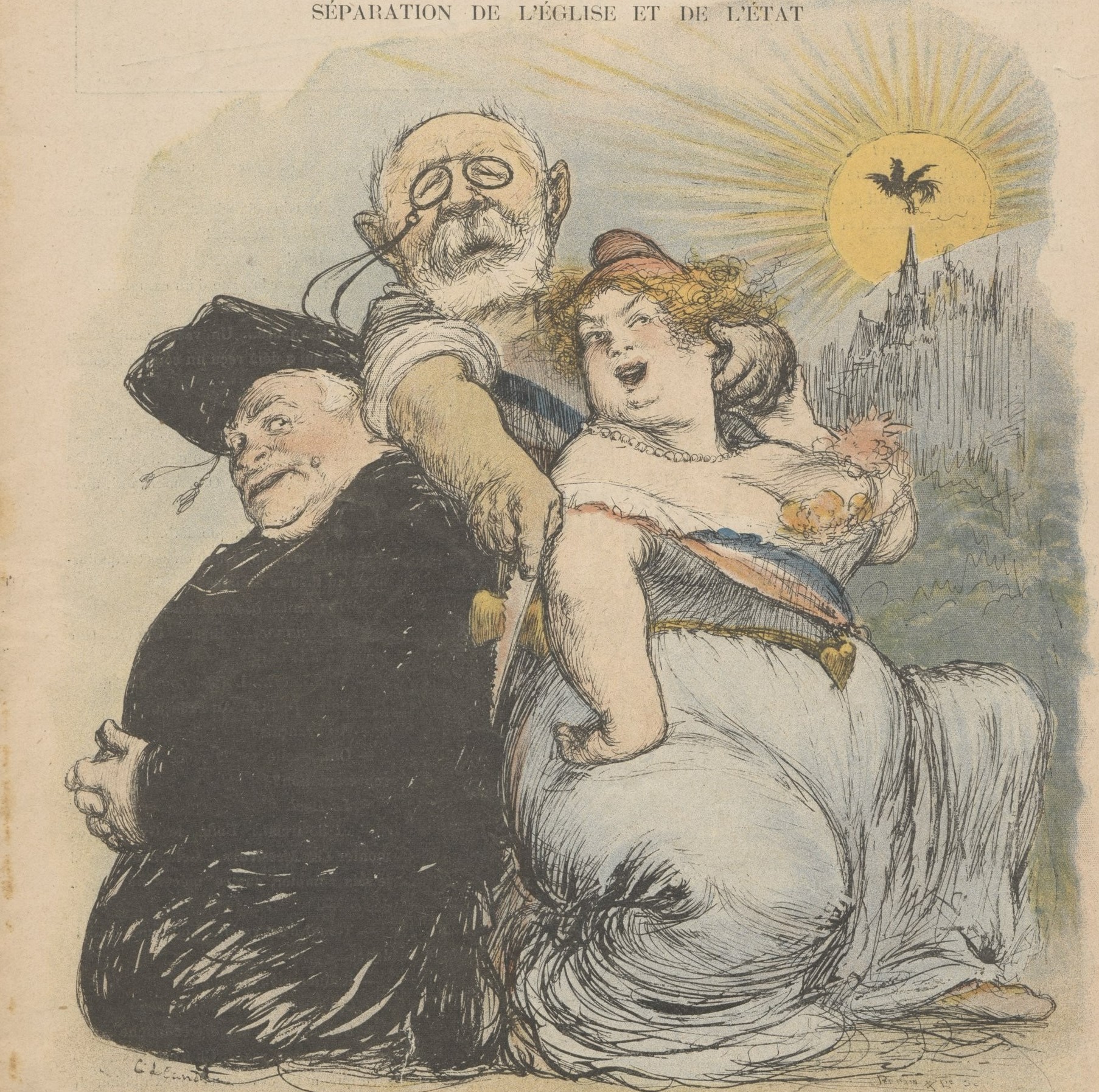 Caricature depicting the separation of the church and the state, published in Le Rire, 1905.