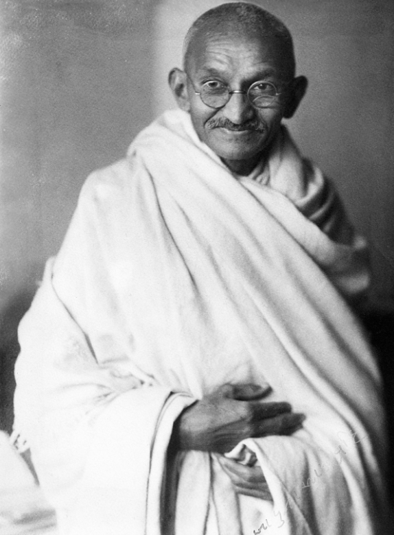 A photograph of Mahatma Gandhi, leader of the Indian independence movement, taken in 1931.
