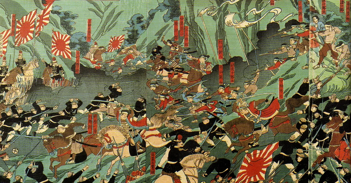 Battle of Shiroyama, the final phase of Satsuma Rebellion, painting by Nagashima Mōsai (Utagawa Yoshitora), 1877.