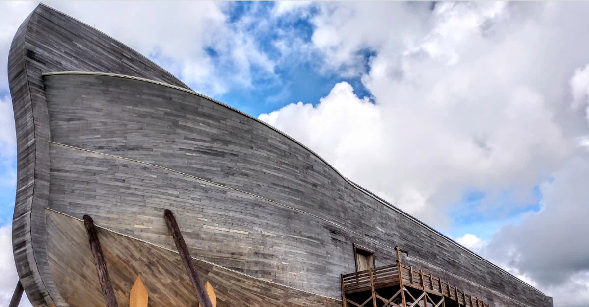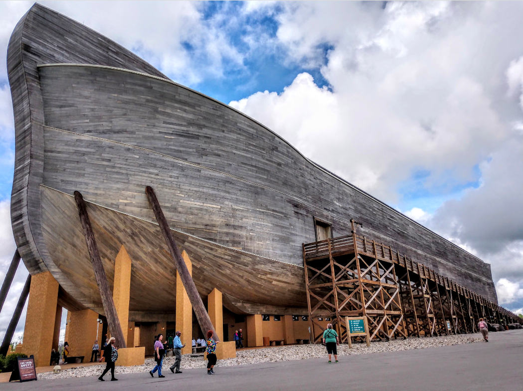 A life-size model of what Noah's Ark may have looked like. From the Ark Encounter theme park in Williamstown, Kentucky, USA.