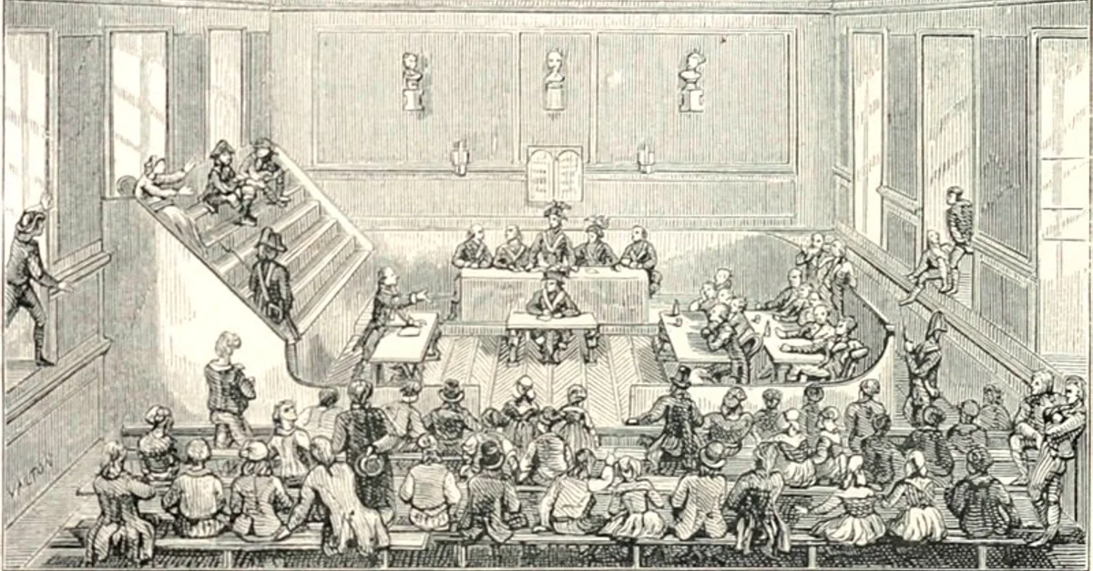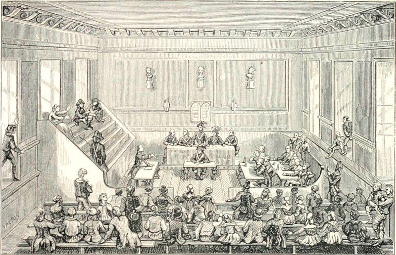 Depiction of the Revolutionary Tribunal during the French Revolution (1789-99) by an unknown author, c. 19th century.