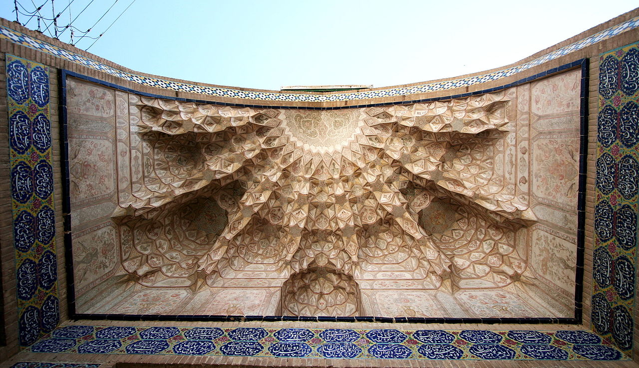 The ceiling of the entrance of the Agha Bozorg Mosque in Kashan, Iran.