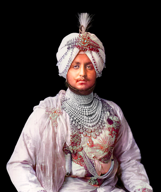 A colourised 1911 photograph of Maharaja Bhupendra Singh of Patiala (r. 1900-1938), one of the Indian princely states.