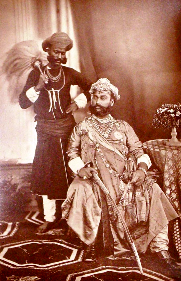 A photograph taken in 1877 by Samuel Bourne of Tukojirao II (r. 1884-1886), Maharaja Holkar of Indore, one of the Indian princely states.