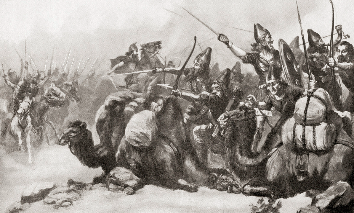 The Battle of Thymbra (547 BCE) was the decisive engagement between Cyrus II (the Great, r. c. 550-530 BCE) of Persia and Croesus (r. 560-546 BCE), King of Lydia. The Persian victory, achieved in part by the use of camels, ended the Kingdom of Lydia. (From the History of the Nations by Walter Hutchinson)