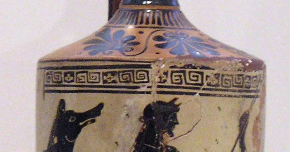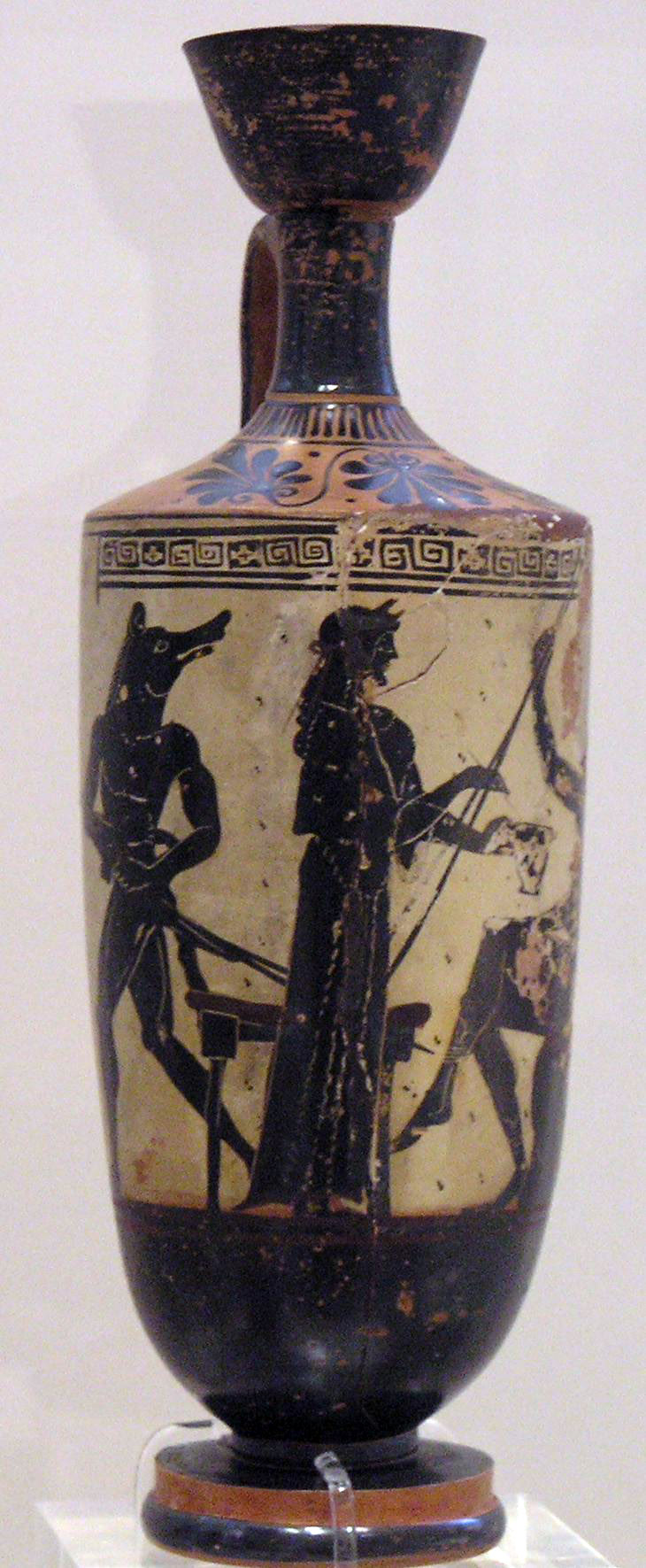 Circe and Odysseus, white-ground lekythos by the Athena Painter, ca. 490–480 BCE. From Eretria. National Archaeological Museum in Athens, 1133.