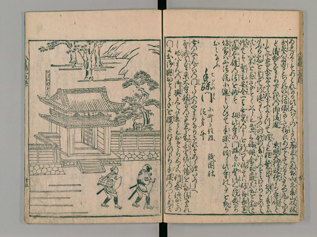 This is a page from the book 'The Man who Loved Love' (1684) written by Ihara Saikaku and illustrated by Hishikawa Moronbu held by the National Diet Library, Tokyo.