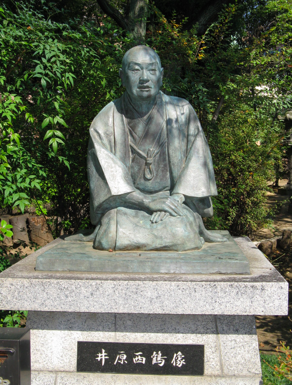 A modern statue of Ihara Saikaku (1642-1693), the Japanese poet and novelist who played a leading role in creating the so-called ‘floating world’ (ukiyo-zoshi) genre of popular literature in the 17th century.