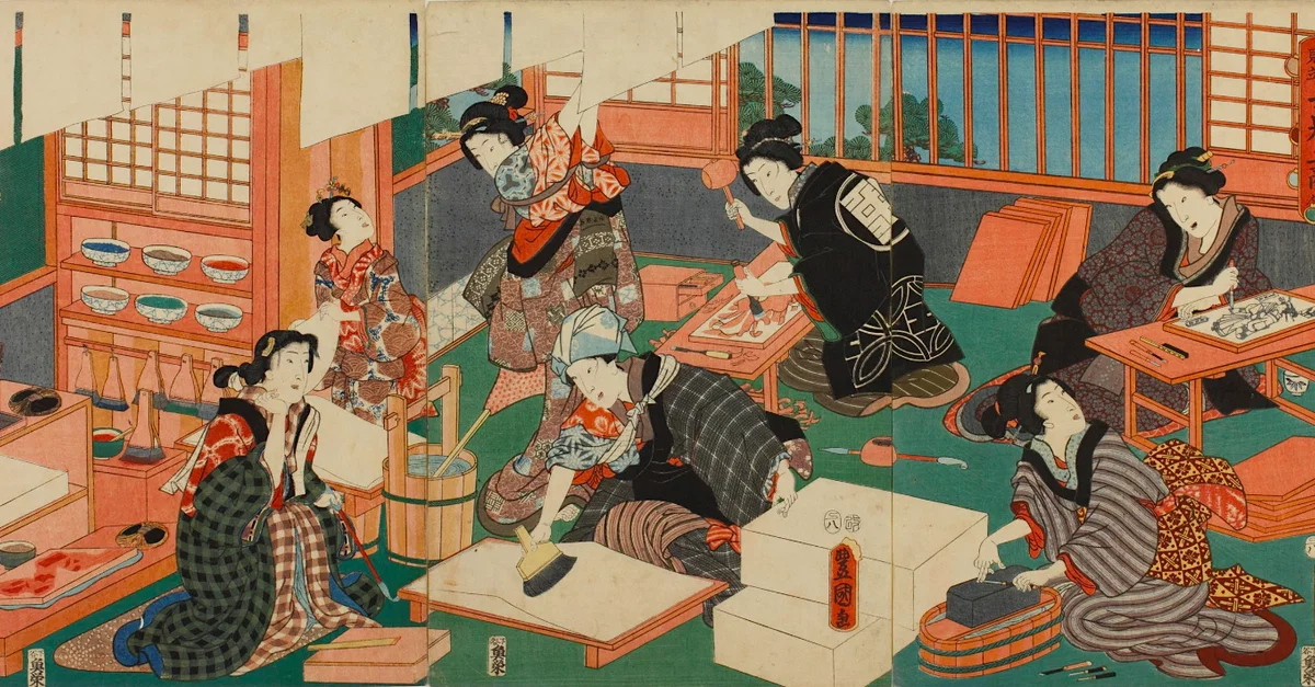 Kunisada, U. (2022, November 08). Fictionalised Scene of Japanese Woodblock Printing. World History Encyclopedia. https://www.worldhistory.org/image/16667/fictionalised-scene-of-japanese-woodblock-printing/