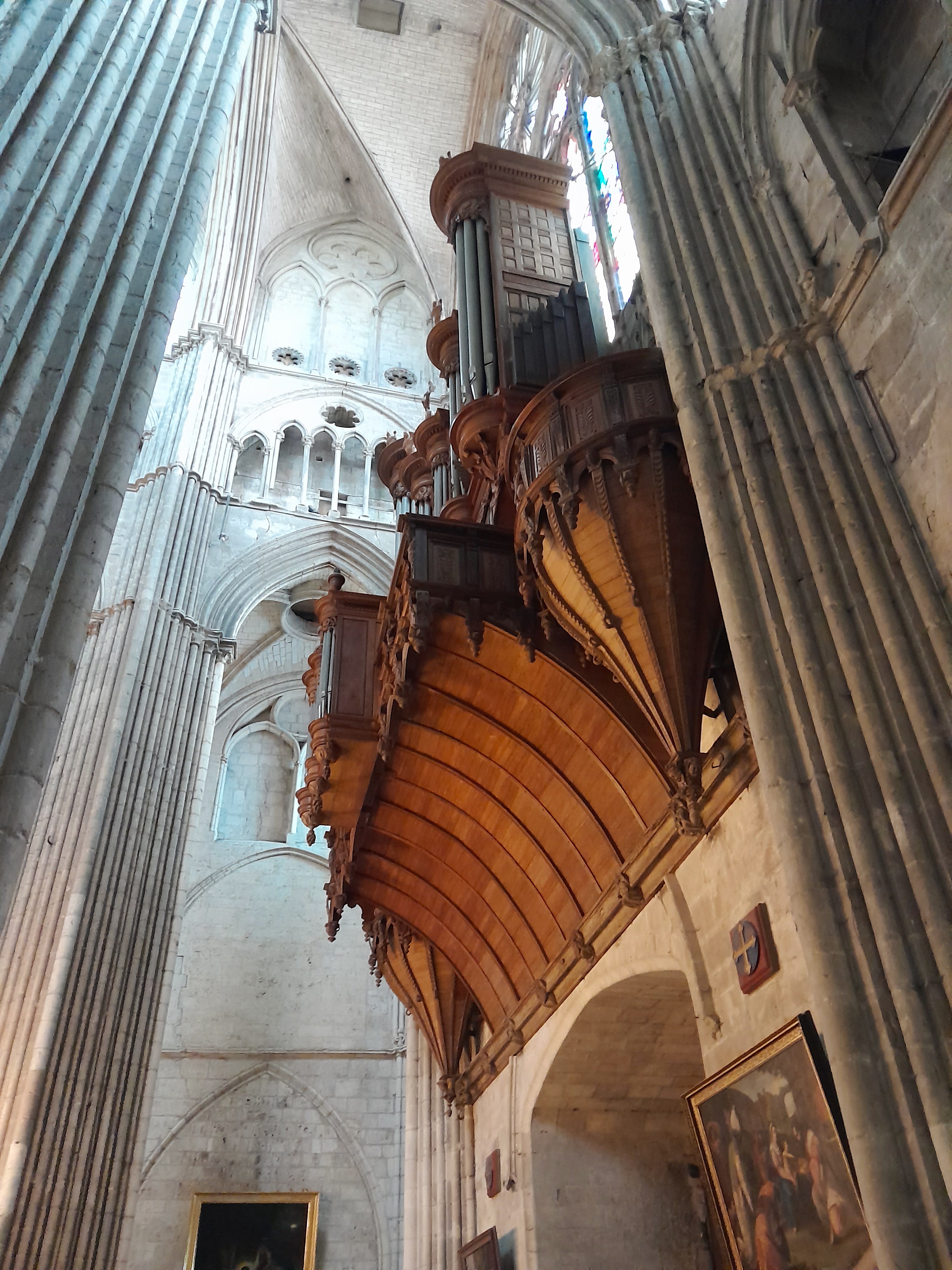 The great organ of Saint Stephen's Cathedral, Bourges, Le Cher, France. The casing is made of oak wood and was sculpted in 1663.