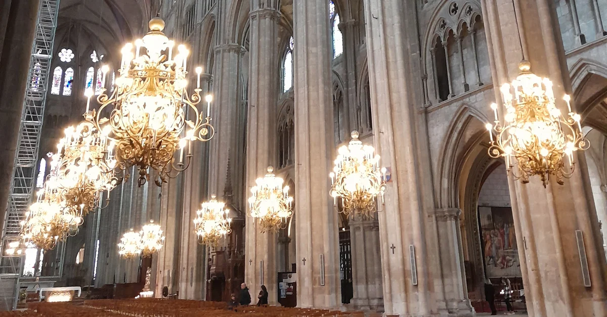 An interior view of Saint Stephen's Cathedral, Bourges, Le Cher, France. Built from 1195 to 1245, it is an example of Gothic architecture.