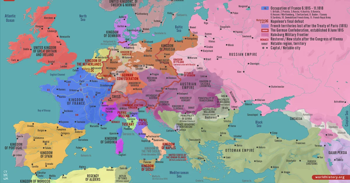 Netchev, Simeon. "Map of Europe after the Congress of Vienna, 1815." World History Encyclopedia, January 31, 2026. https://www.worldhistory.org/image/16713/map-of-europe-after-the-congress-of-vienna-1815/.