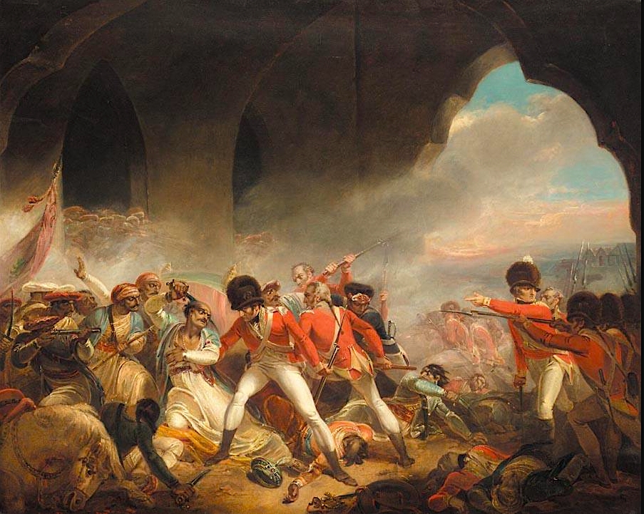 A c. 1800 painting showing the last stand of Tipu Sultan, ruler of Mysore in 1799 at the end of the Anglo-Mysore Wars with the East India Company.