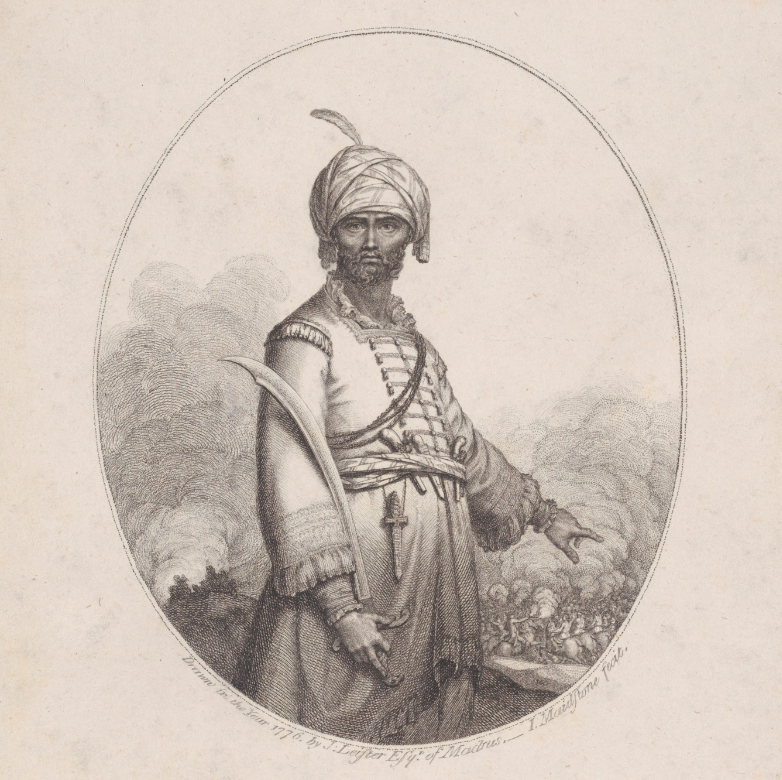 An 18th-century engraving by James Gilray of Haidar Ali, ruler of the southern Indian kingdom of Mysore from 1761 to 1782. (Metropolitan Museum of Art, New York)