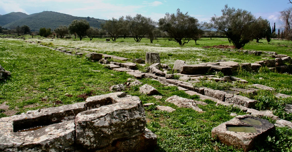 The archaeological site of Thermos at Aetolia, Greece. It depicts Apollo Thermios' sanctuary the center of the Aetolian culture since the first millennium BCE.