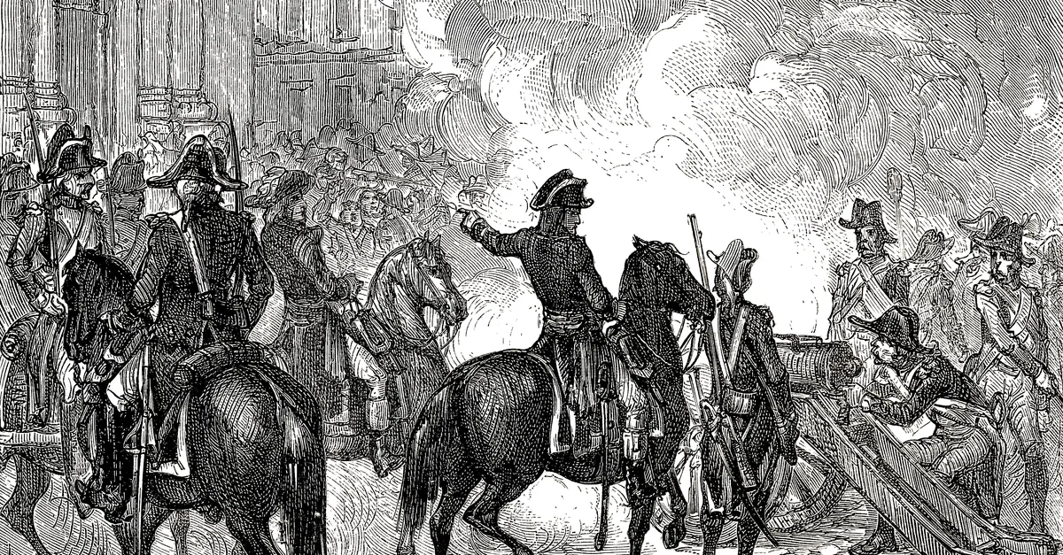 General Napoleon Bonaparte commanding the French Republican troops at the revolt of 13 Vendémiaire Year IV (5 October 1795) at the church of Saint-Roch. By Yan' Dargent, 1866.