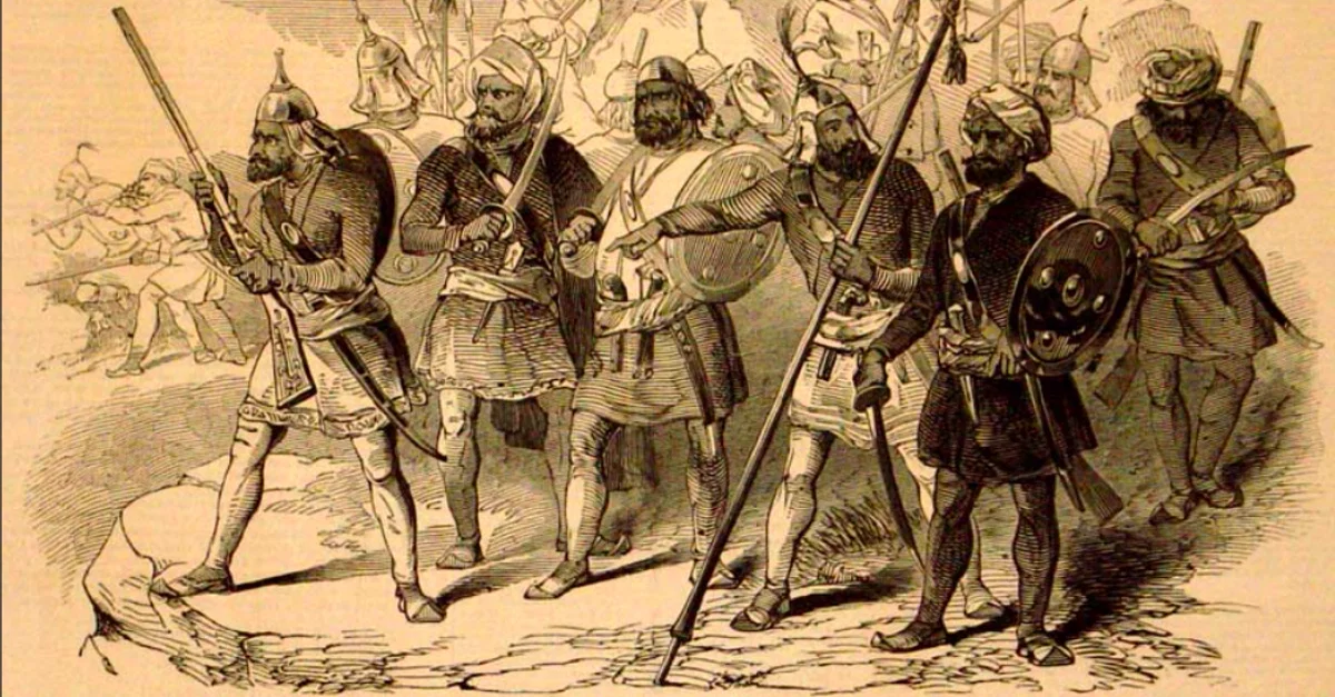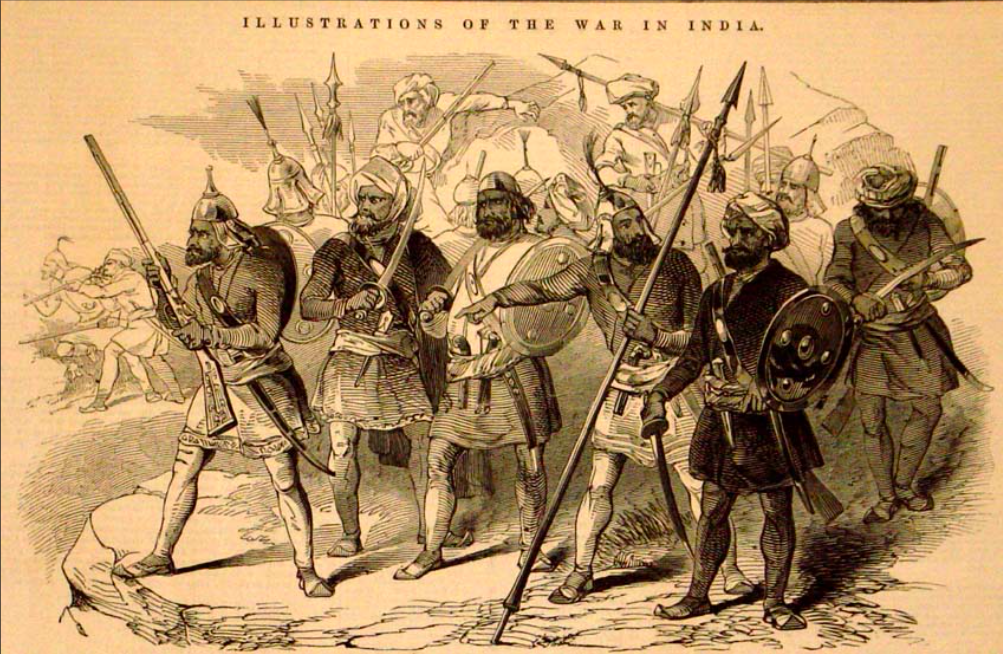 An 1846 illustration showing soldiers of the Sikh empire during the Anglo-Sikh Wars (1845-9) against the British East India Company. (By Lieut. G. F. Atkinson, London Illustrated News)