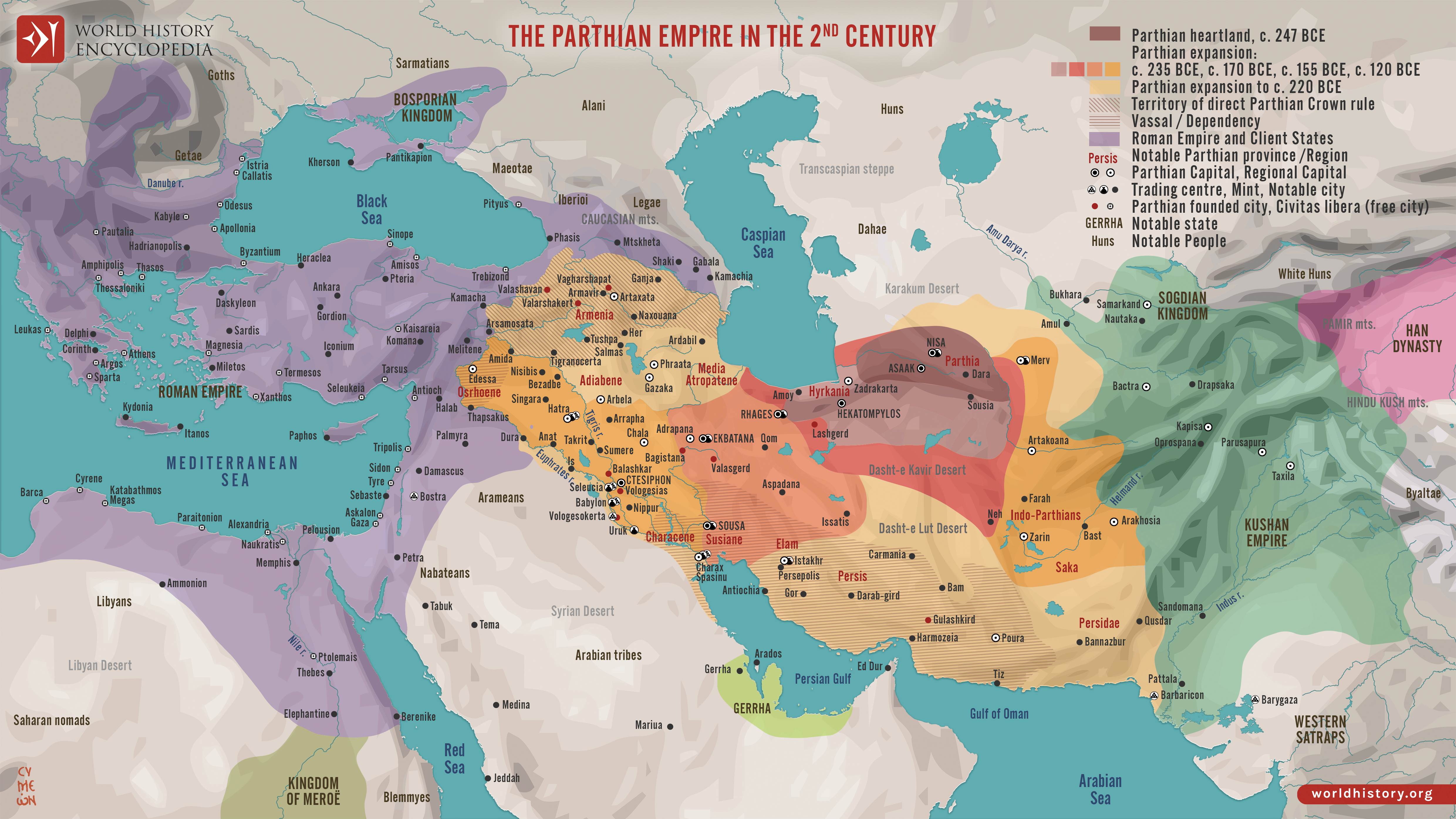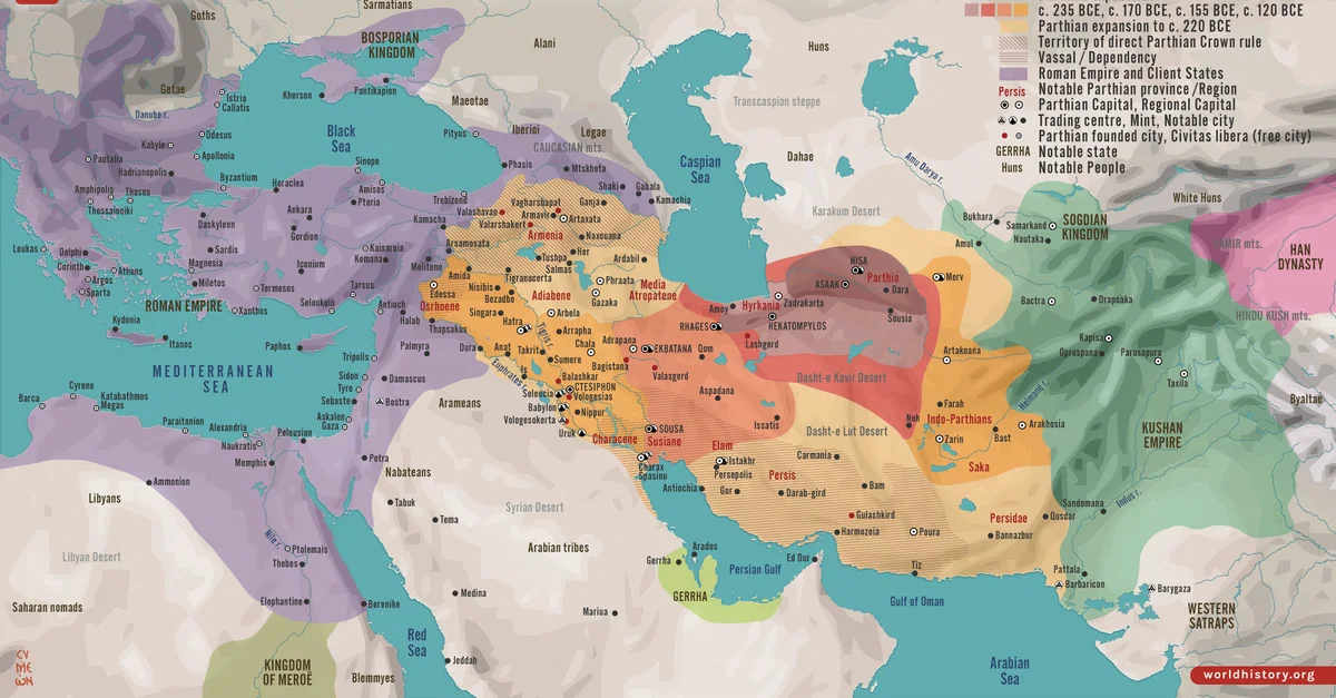 Netchev, S. (2022, December 16). Map of the Parthian Empire in the 2nd Century. World History Encyclopedia. https://www.worldhistory.org/image/16824/map-of-the-parthian-empire-in-the-2nd-century/