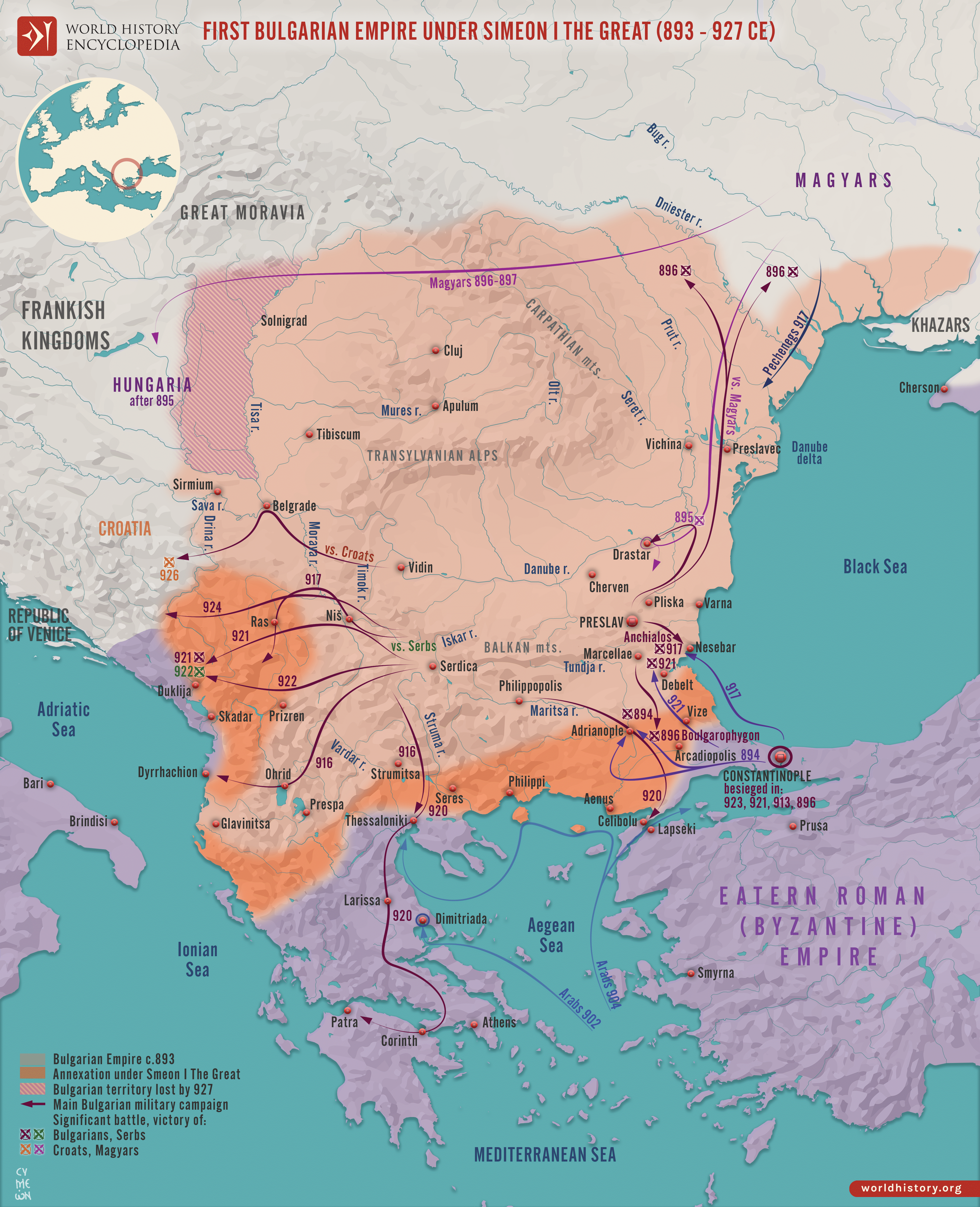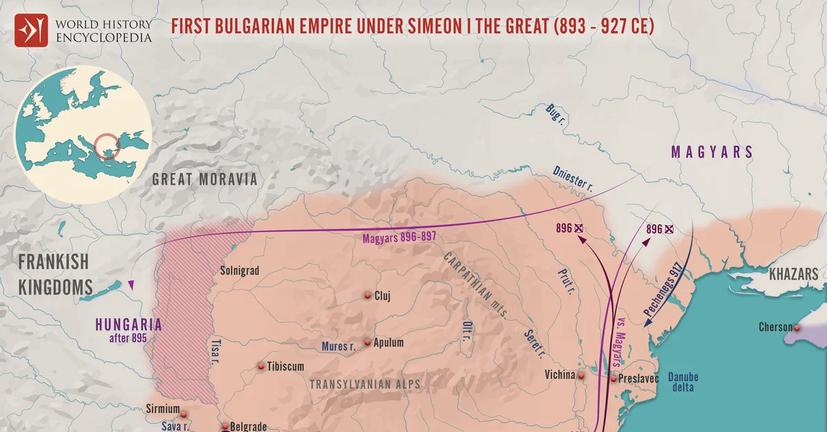 Netchev, S. (2022, December 21). Map of the First Bulgarian Empire under Simeon the Great. World History Encyclopedia. https://www.worldhistory.org/image/16836/map-of-the-first-bulgarian-empire-under-simeon-the/