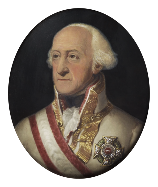 Portrait of Frederick Josias of Saxe-Coburg-Saalfeld (1737-1815), commander of Austrian forces during the French Revolutionary Wars (1792-1802). Painting by William Essex, 1848, based on an earlier work by Ferdinand Jagemann. Essex's painting was commissioned by Queen Victoria and is now in the British Royal Collection.