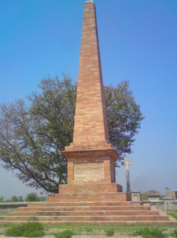 The monument to the Battle of Chillianwalla (now in Pakistan) fought on 13 January 1849 between the British East India Company and the Sikh Empire during the Anglo-Sikh Wars (1845-9). The battle was a draw with heavy casualties on both sides.