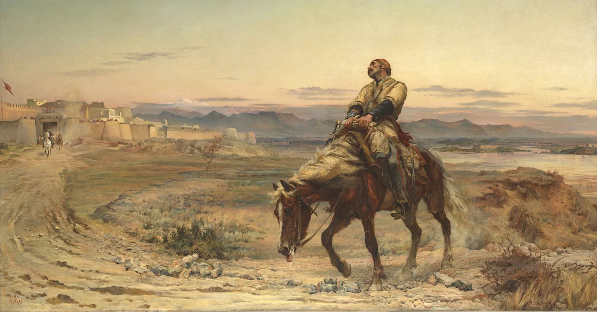 An 1879 painting titled 'Remnants of an Army' by Elizabeth Thomson showing Dr William Brydon, the sole European survivor of the Retreat from Kabul in 1842 during the First Anglo-Afghan War (1838-42). (Tate Britain)