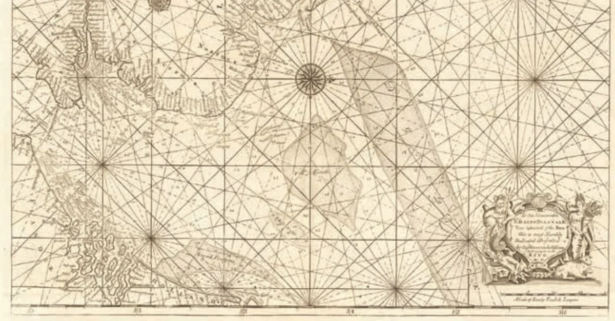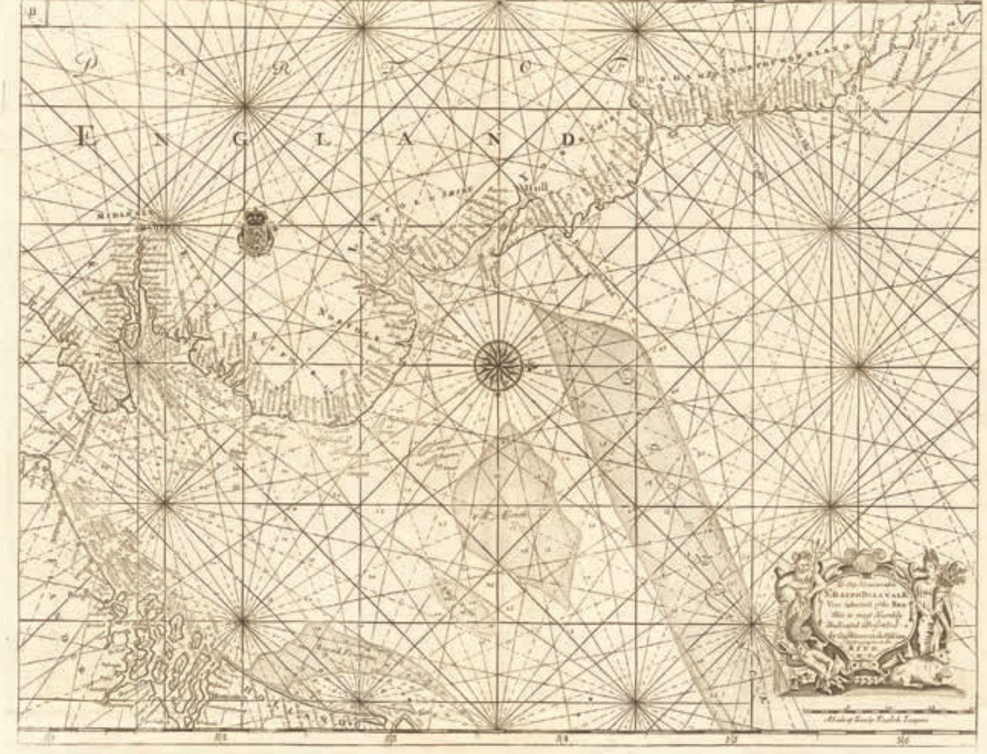 Map of the East Coast from the River Thames to Edinburgh, from Great Britain's Coasting Pilot,ink on paper by Greenville Collins, c. 1682-1694. Probably drafted in 1682 but not published until 1693, this chart is the first to show with accuracy the distance between the Leman and Ower sandbanks and the mainland.