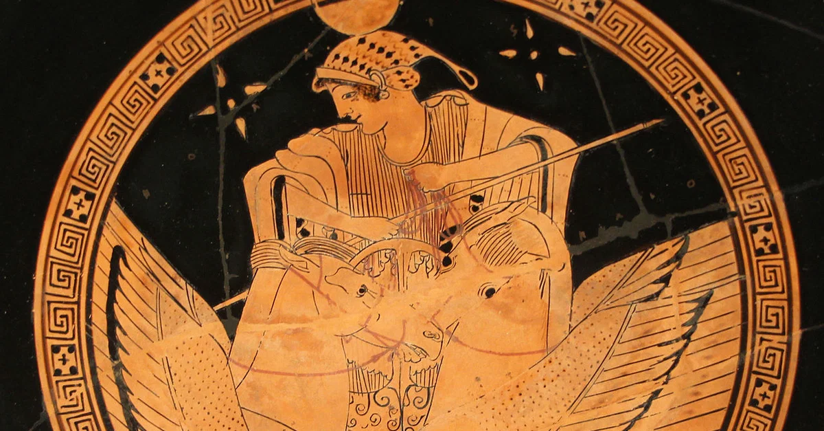 Selene and her horses on an Attic kylix attributed to the Brygos Painter, c. 490 BCE. Antikensammlung, Berlin.