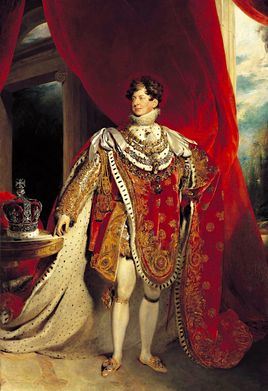 An 1821 painting by Thomas Lawrence of George IV of Great Britain (r. 1820-30) wearing his coronation robes. (Royal Collection)