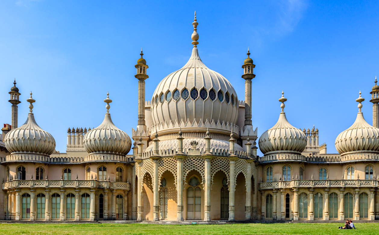 The Royal Pavilion of Brighton. It was built from 1787 when regular visits by Prince George, future George IV of Great Britain (r. 1820-1830) made the resort highly fashionable.