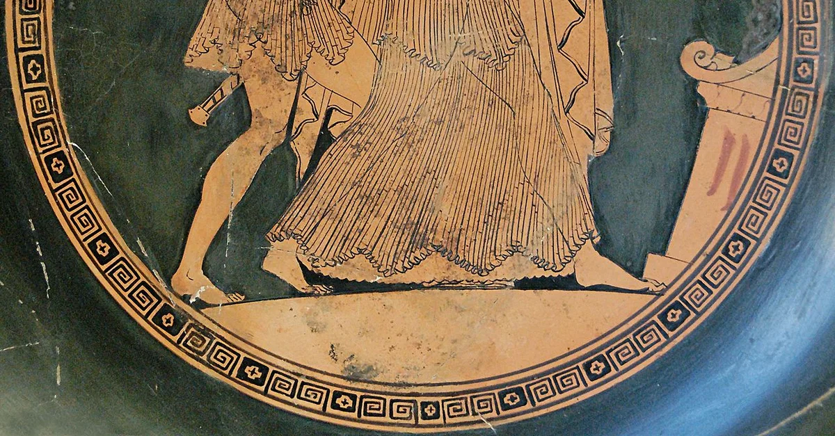 Thetis changing into a lioness as she is attacked by Peleus. Attic red-figured kylix by Douris, c. 490 BCE from Vulci, Etruria. Bibliothèque Nationale de France, Paris.