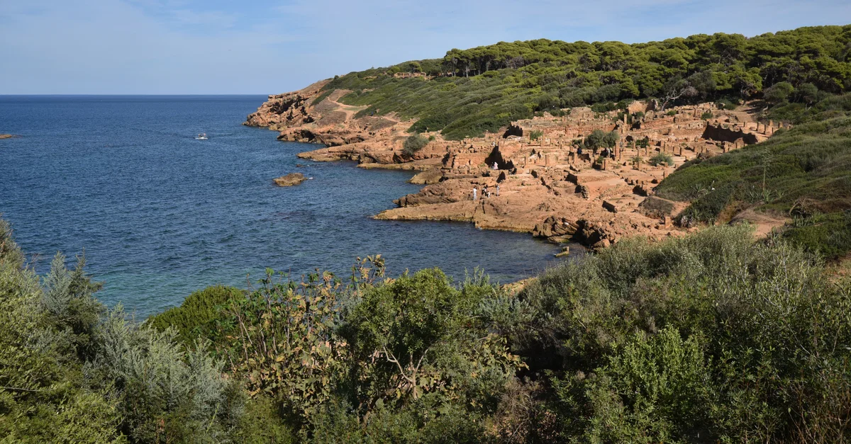 Constructed in the 2nd century CE according to a Hellenistic plan, the so-called Villa of the Frescoes in the ancient city of Tisapa (modern Tipaza in Algeria) was a wealthy townhouse of 1,000 square metres (10763 sq ft). It was accessed from the Cardo Maximus via a portico which led to a large courtyard. The remains of a mosaic that decorated the dining room floor (triclinium) and traces of wall painting (hence its name) testify to the prosperity of the city and the wealth of this residence.