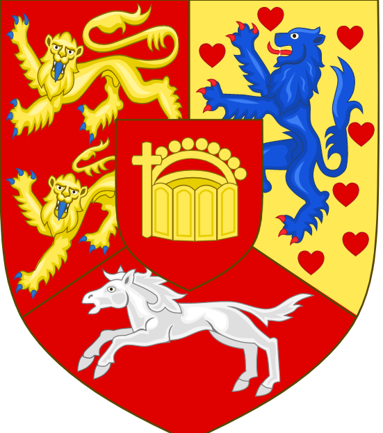 The coat of arms of the European House of Hanover. These arms were added to the British monarchy's coat of arms during the reign of the British Hanoverians.