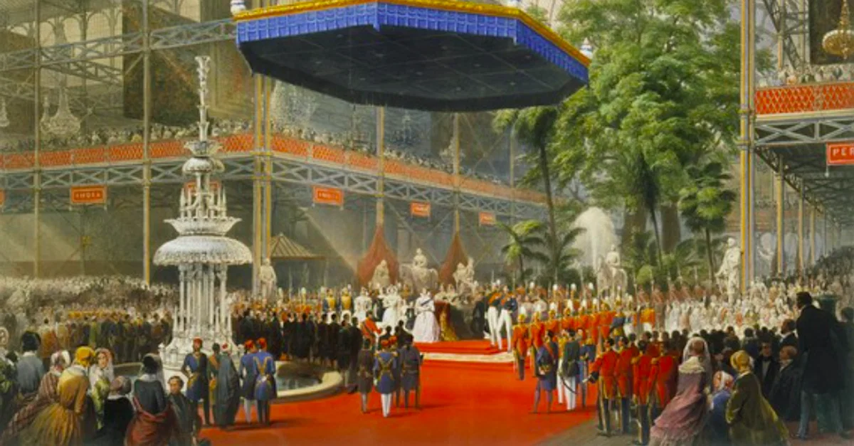 An illustration by Louis Haghe showing Queen Victoria (r. 1837-1901) opening the Great Exhibition of 1851 in the Crystal Palace in Hyde Park, London. (Victoria & Albert Museum, London)