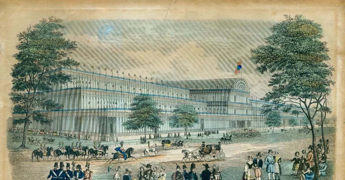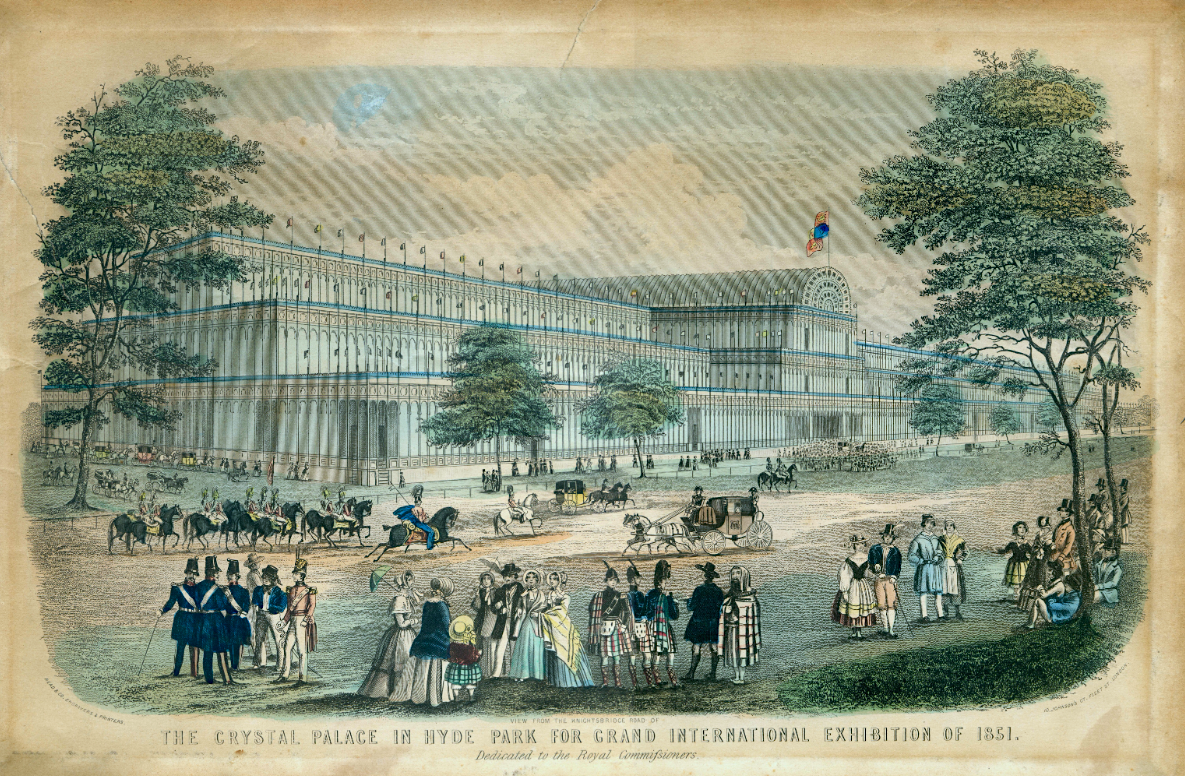 An illustration of the Crystal Palace hosting the Great Exhibition of 1851 in London. (Read & Co. Engravers & Printers, 1851)