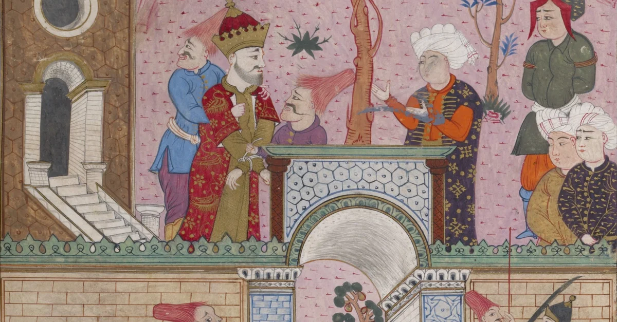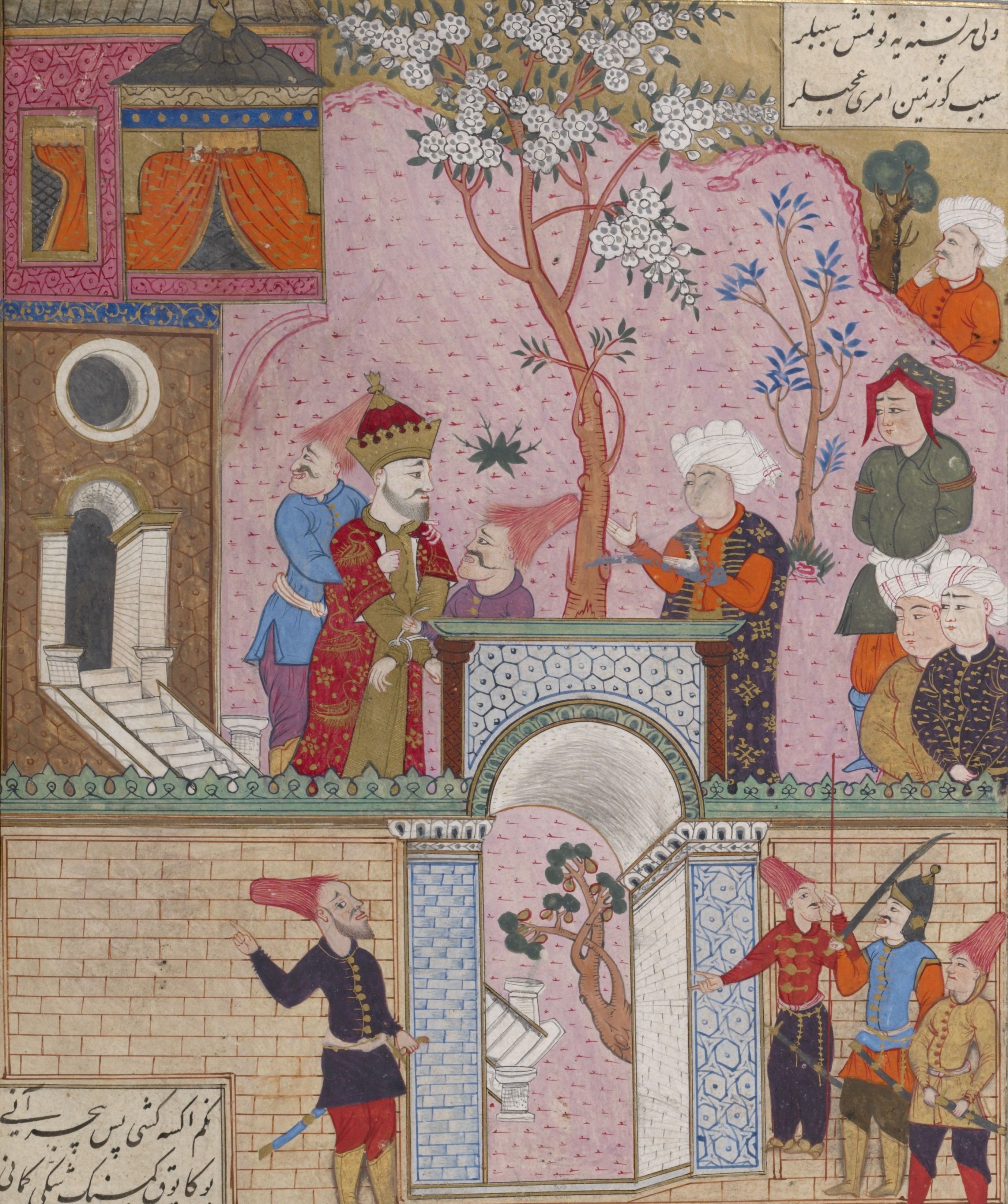 Arrest of Khosrow II (r. 590-628), illustration from a 16th-century Turkish manuscript of the Shahnameh.